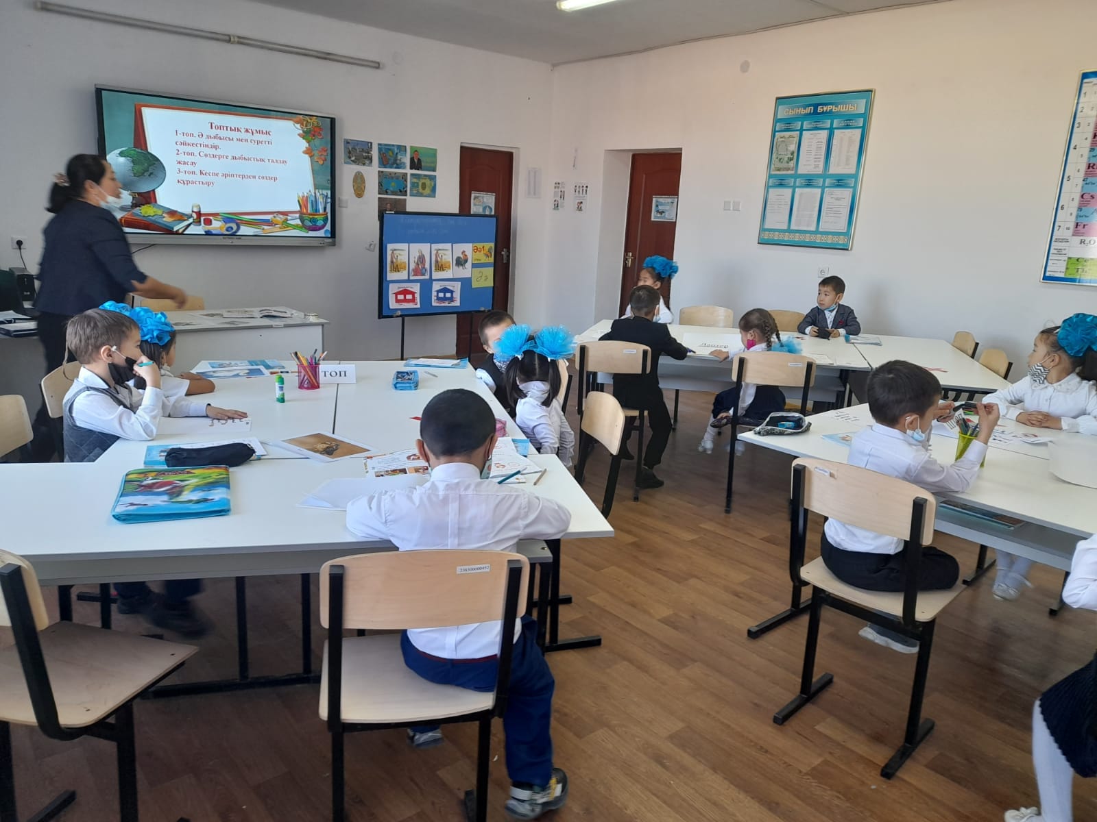 Оқушылар сабаққа белсене араласып отырды.