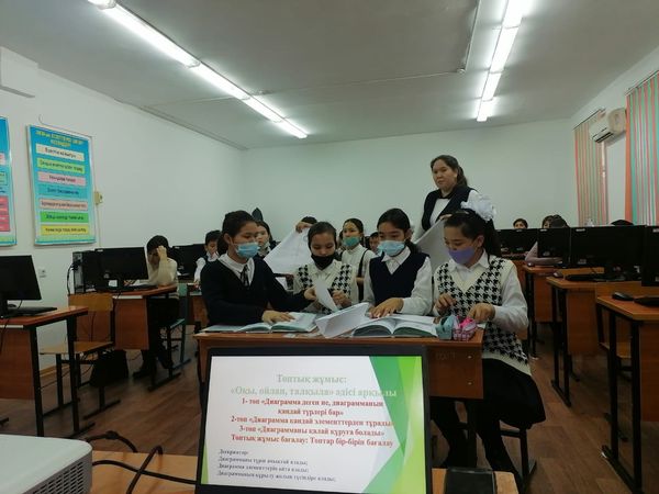 N114 орта мектептебінде жоспарлы ашық сабақ кестесіне сәйкес, инфарматика пәнінің мұғалімі Күзембеава Мереке 7"Б" сыныбына "Кестелі деректерді графика түрінде ұсыну" тақырыбында, санитарлық талаптарды сақтай отырып ашық сабақ өтті.