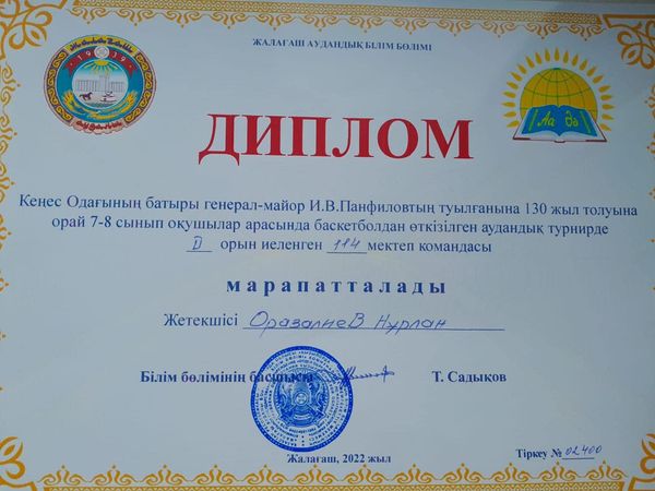 Дене шынықтыру пәнінің мұғалімі Оразалиев Ерлан ағайға алғысымыз шексіз. Оқушыларға биіктерден көрінуіне тілектеспіз