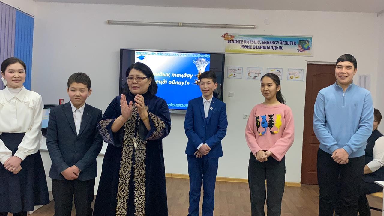 Мектептің үздік оқушысы Рысбай Айаруға планшет,модем,кітап,тәттілер және жұмсақ ойыншық табыстады. Рысбай Айару өз алғысын білдірді.